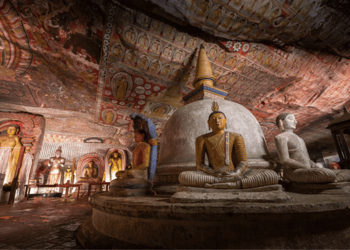 Desayuno y salida para visitar el Templo de las Cuevas de Dambulla, con más de 2.000 años de antigüedad y declarado Patrimonio de la Humanidad. Las paredes y techos de sus cinco grutas están cubiertos de antiguos murales y más de 150 estatuas de Buda.